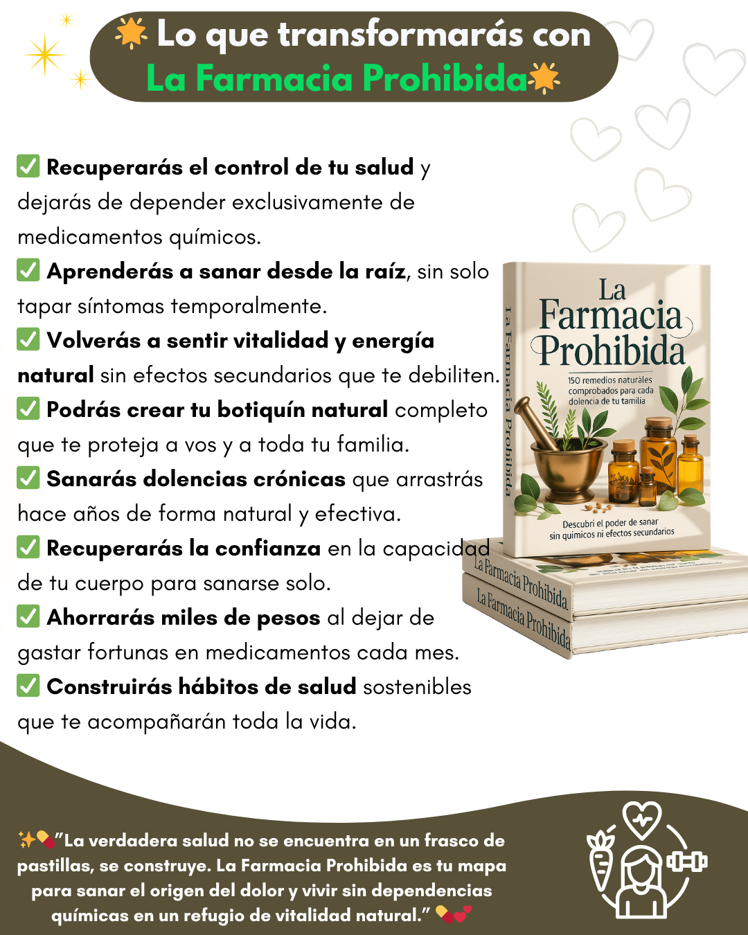 “La Farmacia Prohibida” está ayudando a miles de familias a aliviar dolores articulares, problemas digestivos, estrés, insomnio y defensas bajas sin químicos ni efectos secundarios.
